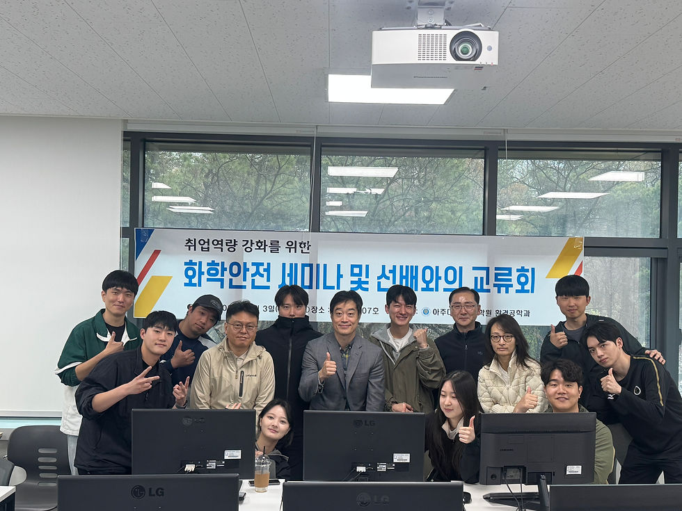 2026년 4월10일 진행된 화학안전 세미나는 아래와 같이 진행되었으며, 이후 스크린 야구를 통해 참여자간 친목을 도모하는 시간을 가졌습니다.